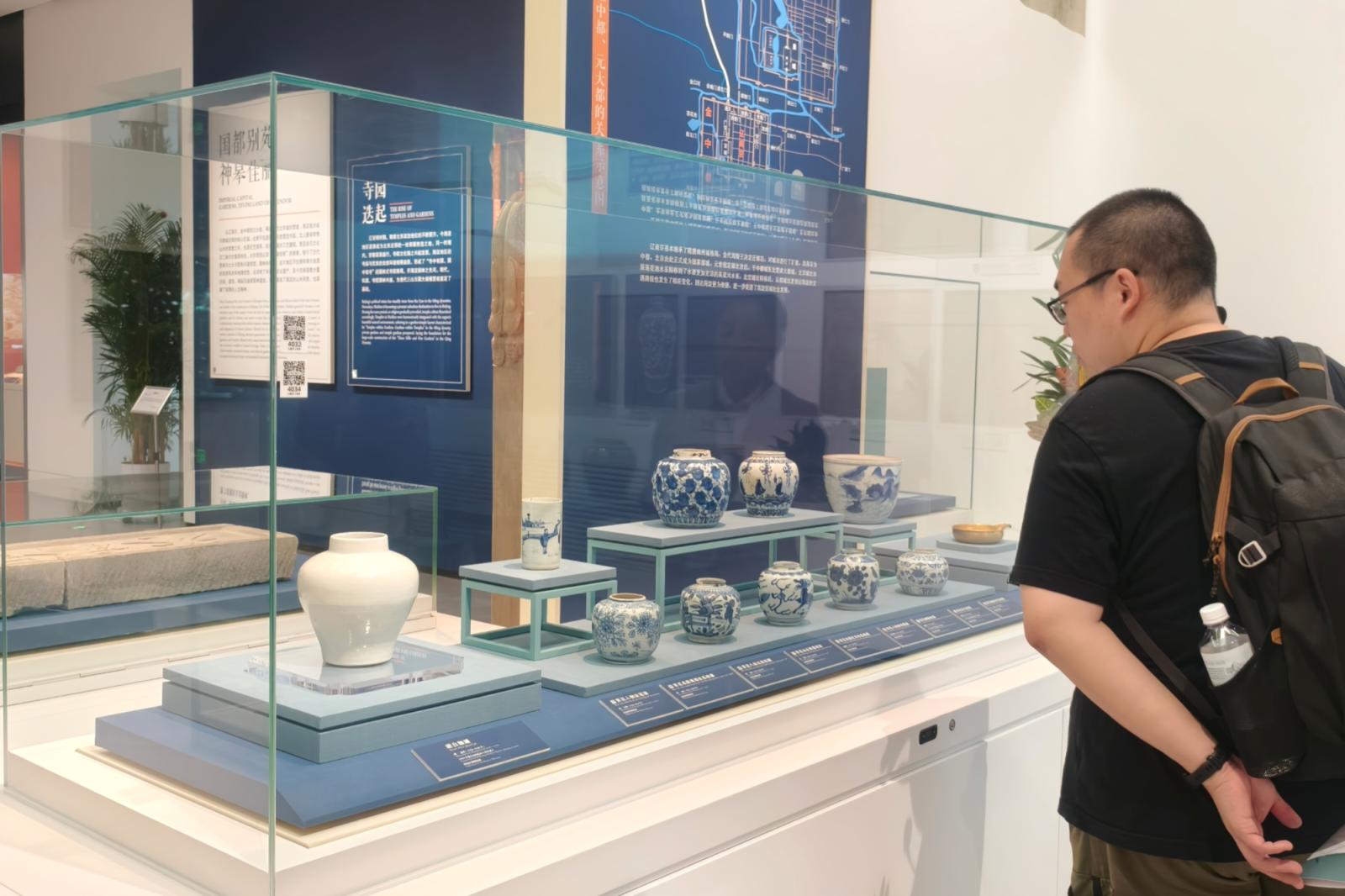 一件明代的青花携琴访友图罐,罐身绘有“俞伯牙携琴访友”“高士对弈”等经典场景。专家介绍,这件青花瓷罐1985年出土于中国气象局院内,细看罐身,青花发色淡雅温润,胎质细腻如脂,堪称景德镇官窑经典之作,“知音典故”的题材设计,尽显明代文人的归隐情怀与精神追求。这件文物不仅凸显了明代青花瓷的珍贵,更是目前北京地区出土的唯一明成化年间的真迹。